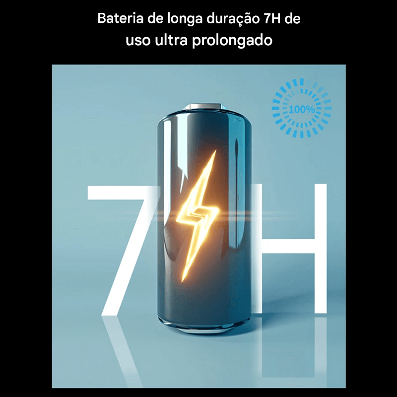 A conectividade Bluetooth sem fio oferece conexão rápida e estável com seu smartphone, proporcionando chamadas claras e reprodução de músicas com excelente qualidade sonora. A bateria de longa duração permite horas de uso contínuo, garantindo desempenho ao longo do dia.